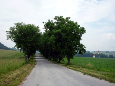 Blick vom Kirchturm auf den Weg in Richtung Blatnica.