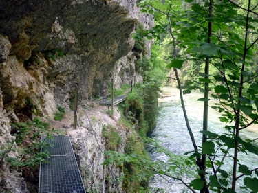 Dieser recht schmale Abschnitt des Weges ist mit Stahlseilen und Stegen gesichert.