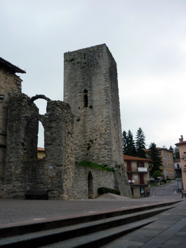 Ein Lombardischer Turm mit Resten der Befestigungsanlagen aus dem 8. Jahrhundert.